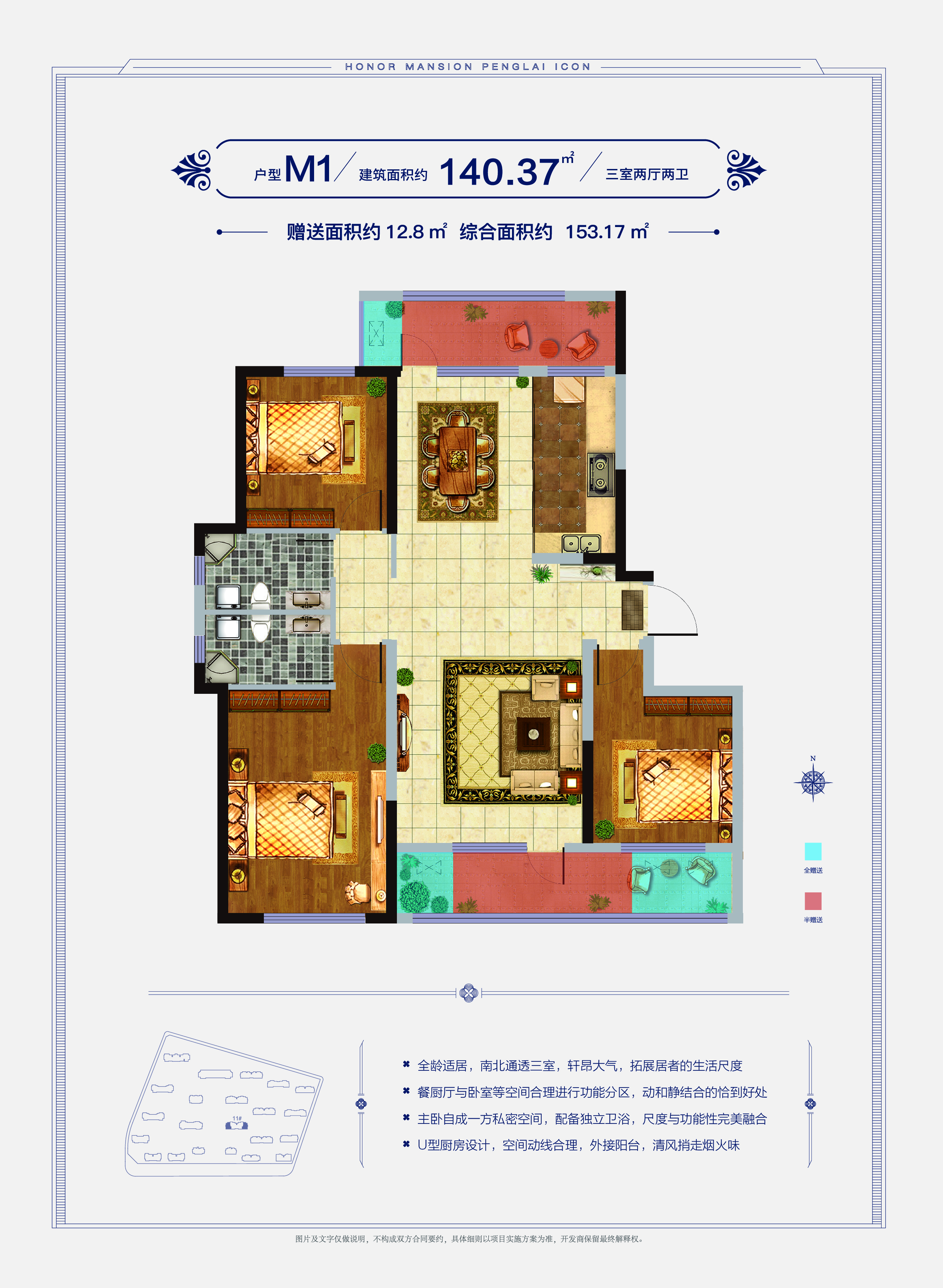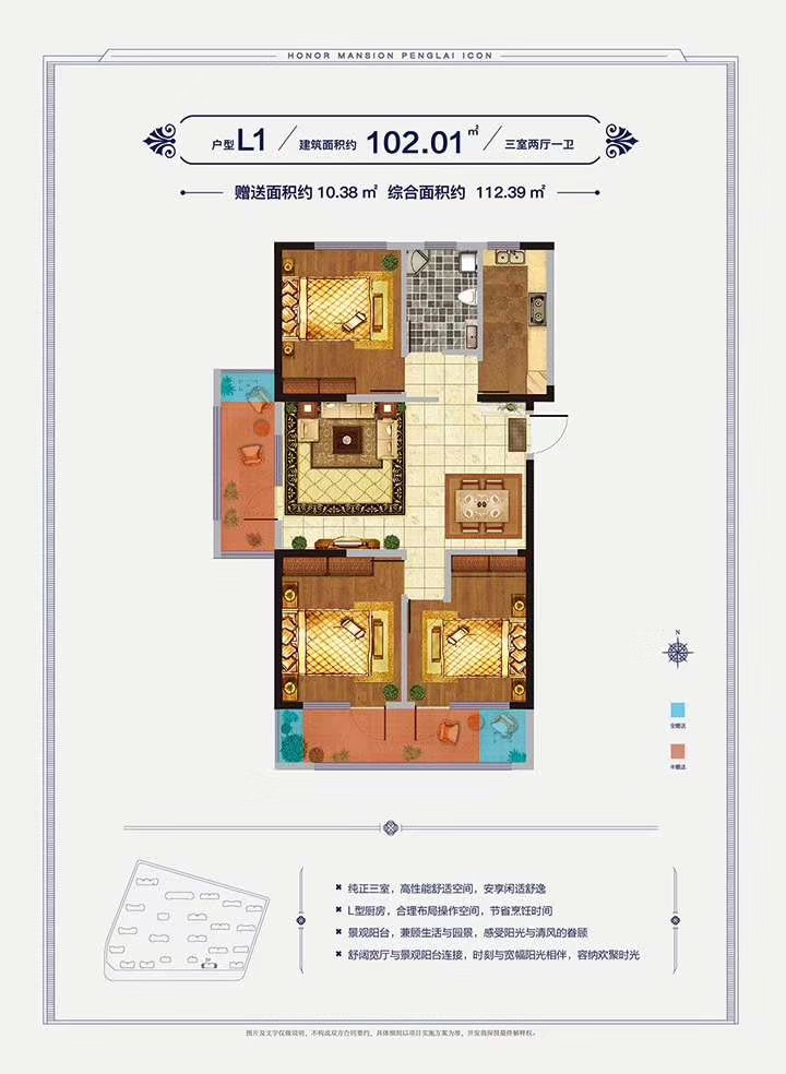 南北通透三室,轩昂大气